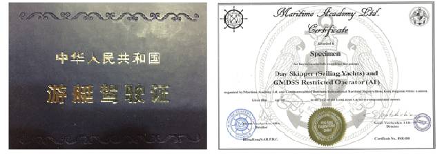 中华人民共和国海事局、多米尼克国家海事局 颁发的(另付费)帆船游艇驾驶证