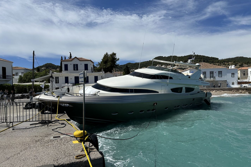 5月10日,Cantieri Navali Rizzardi的30.2米机动游艇“Why”号上周在希腊斯佩塞斯搁浅后已被打捞上来。该事件发生在5月4日一段时间的强风之后,当地新闻媒体报道称,船长试图离开高度暴露的主要城镇码头,却被吹到海滩上。