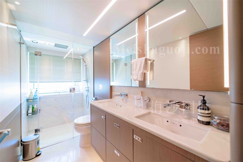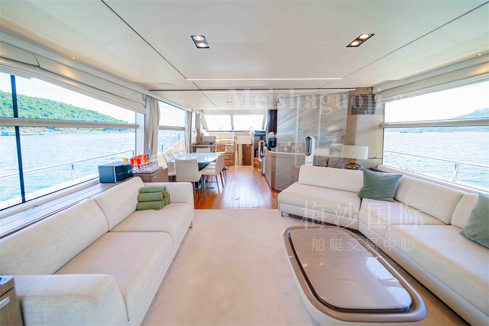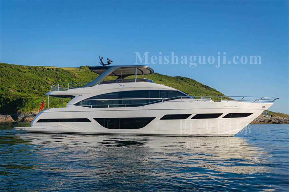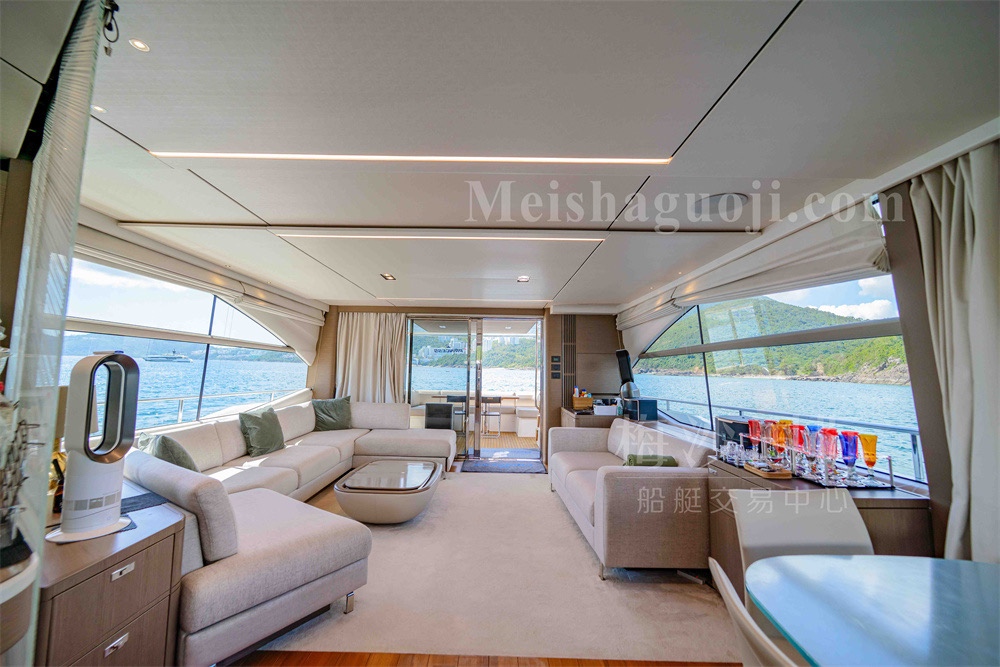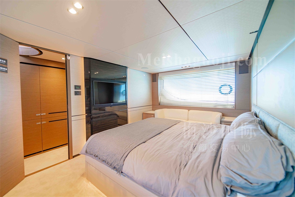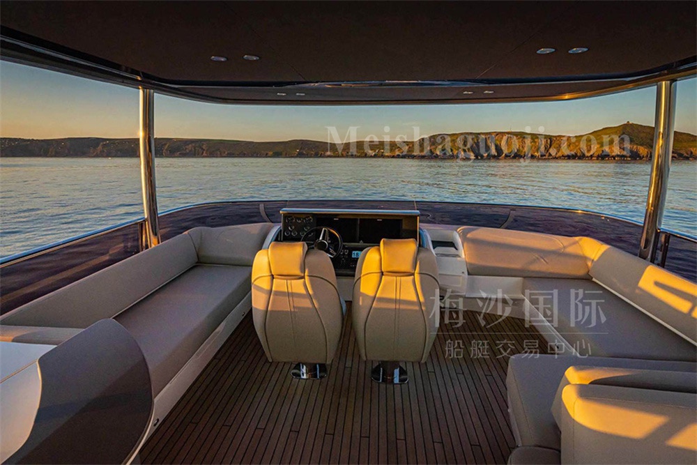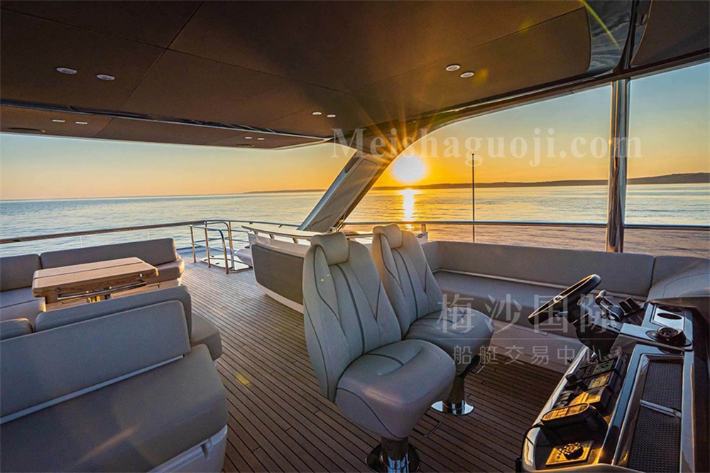 2020年产78尺英国飞桥游艇,两台MAN发动机共3600匹马力,使用850小时,最高航速可达36海里,燃油舱容:6000升,淡水舱容:1350升,五个房间五个洗手间。