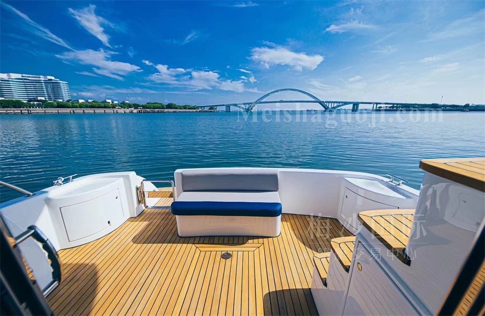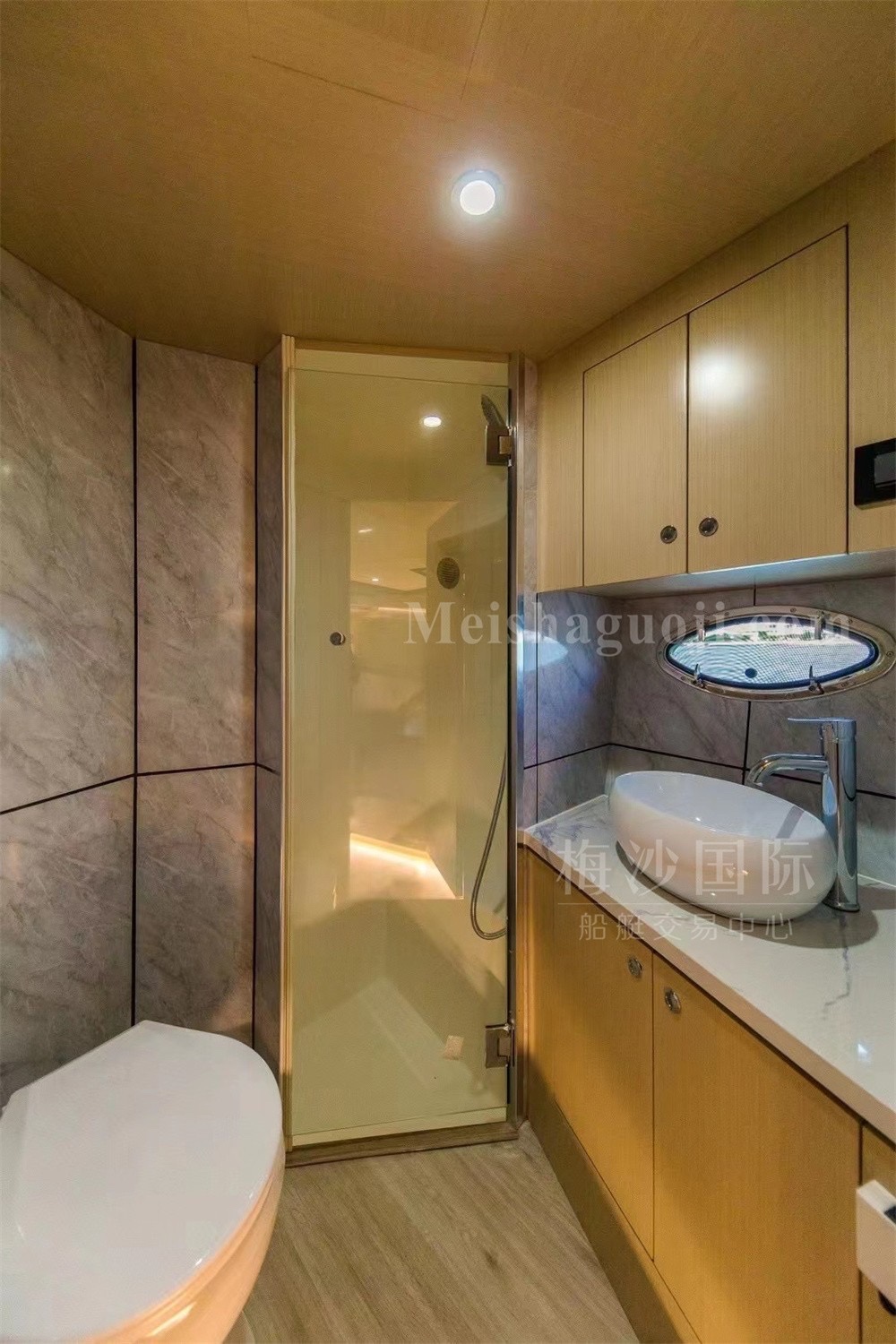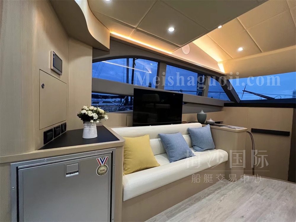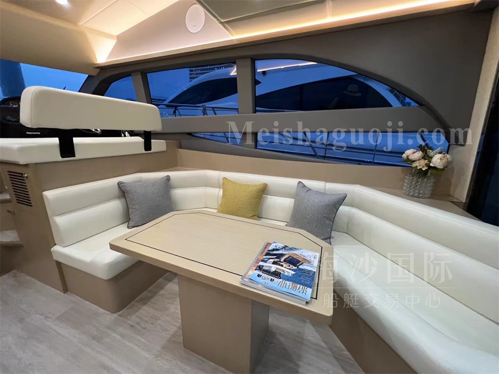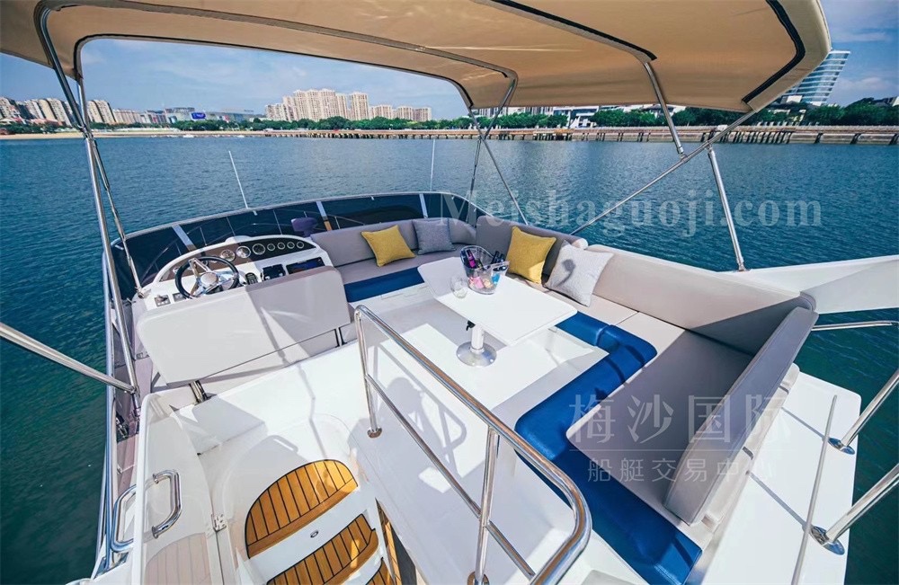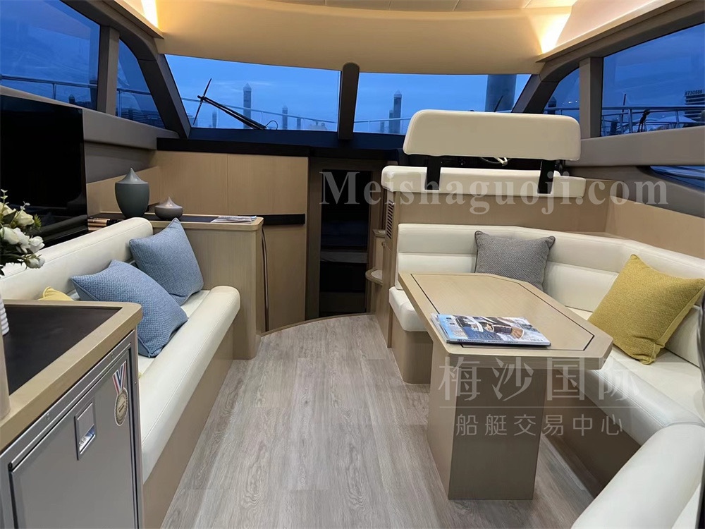 新船现货,42尺飞桥游艇,两台重汽发动机共620匹马力,燃油舱容:1100升,淡水舱容:450升,两个房间两个洗手间。