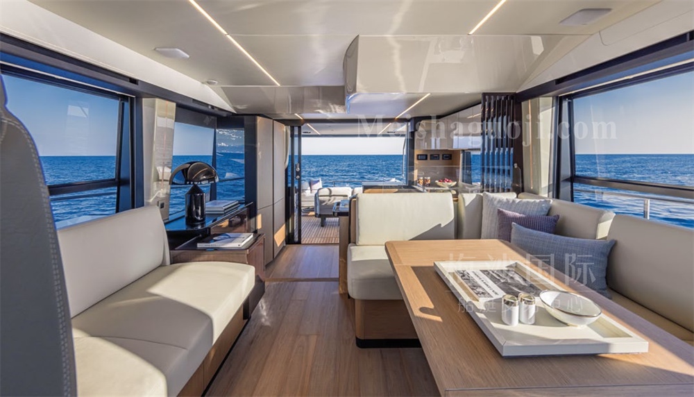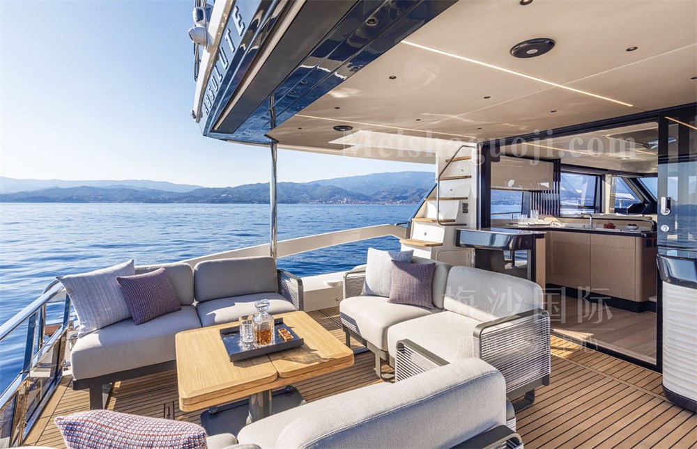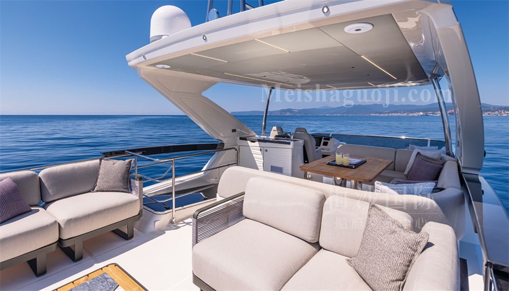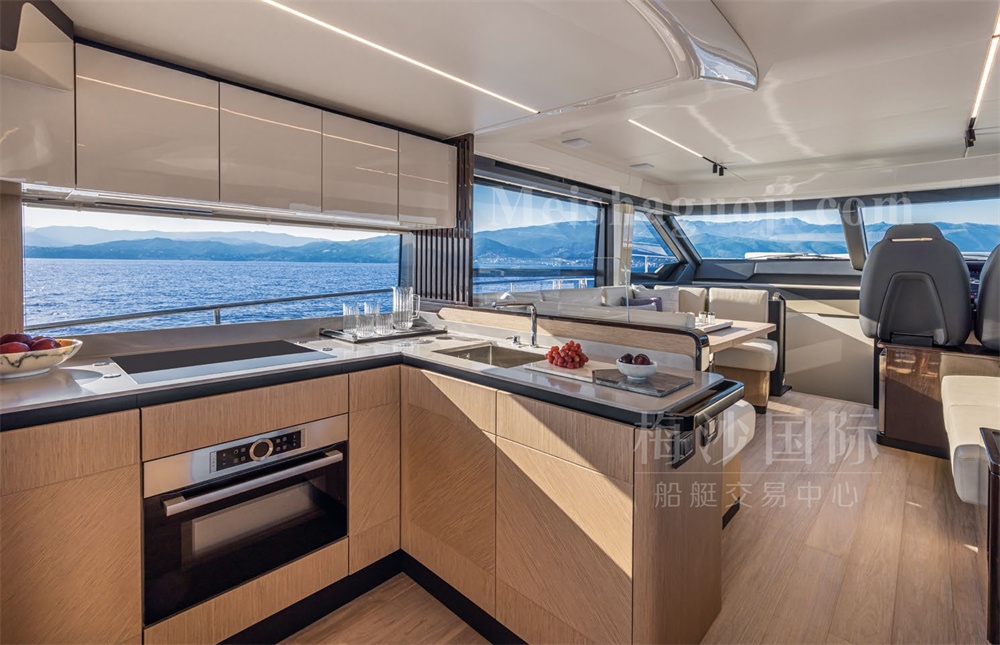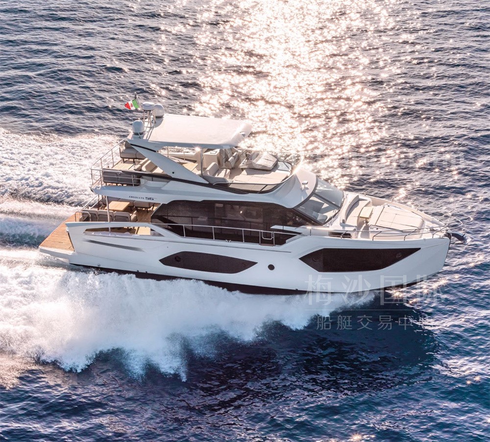 新船现货56尺意大利飞桥游艇,两台VOLVO发动机共1200匹马力,燃油舱容:2600升,淡水舱容:650升,四个房间四个洗手间,带开放式厨房,定制酒吧,硬顶内置太阳能板,可持续供电。