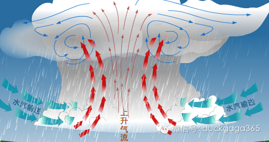 产生暴雨的主要条件:一是充足的水汽来源;二是有强盛而持久的上升运动;三是大气层结的不稳定。天上的积雨云,比一般云来说,其中水汽更丰沛,上下对流更旺盛,产生暴雨的主要云。此外,特殊的地形对暴雨的产生起着推波助澜的作用。