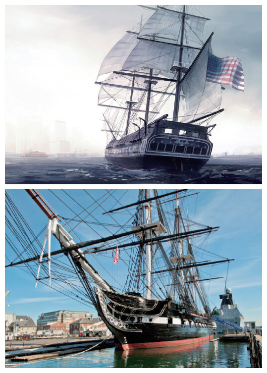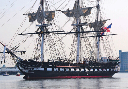 美国海军“宪法”号三桅木帆舰是华盛顿总统保卫年青共和国时代的海洋权益的6艘同型之一,该舰总面积达42270平方英尺,载44~50座射程1200码的火炮,全船原配官兵450名。舰首有希腊神话中的大力英雄海格利斯雕像。当时整船造价约为32万美元。1828年曾担任美国地中海舰队的旗舰,1871年改装后担任若干年的训练舰,又做为炮靶,直到后来停在码头旁逐渐被人们淡忘。1927—1930年再度因公众关注而获得国家教育基金赞助修理和改装后,由一艘扫雷舰拖航周游访问美国沿岸90个港口,接待450万参观者,声威大振。3年后被确定为国家级文物,驻泊在波士顿市查里斯敦海军船厂已不用的船坞旁,作为美国海洋与海军历史里程碑,是浮动的海军与海洋博览教育基地。