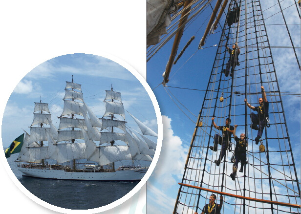 从最基础的爬桅杆开始,到最后参加全程的操纵训练,加上远洋航行,体验以人力和海洋搏斗的感觉,不仅可以使实习学员实践在学校学到的理论知识,同时通过风帆操纵训练能够锻炼和培养官兵的勇气、胆量和信心。风帆训练的过程是组织、指挥与协调的过程,同时也是培养团队精神的过程。