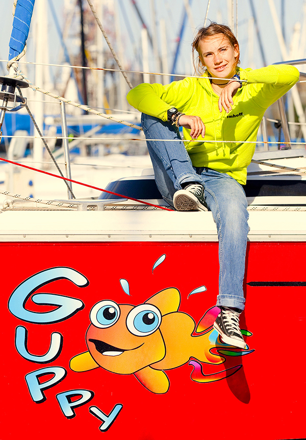Laura 把自己的船命名为”Guppy”,一艘11.5米双桅 Jeanneau Gin Fizz ketch,她的父亲和她一起购买了这艘船。Gin Fizz 首发于1974年的巴黎船展,它的出现翻看了当代航海史的篇章,曾为我们带来数不胜数的航海故事。Laura 的故事是 Gin Fizz 的又一传奇。