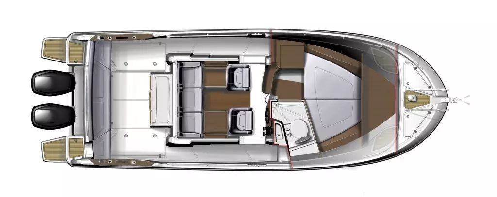 船艉外置发动机,维护更便捷,可配备两台225马力发动机或一台350马力发动机。