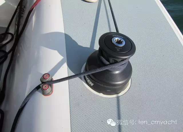 4、扬前帆,由于当时正忙于升前帆,没空出手拍照,反正此时已经把前帆升起来了,已经兜满了风。